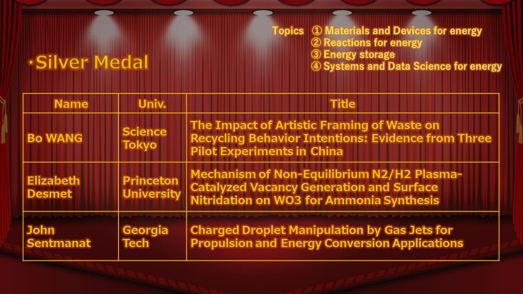 ホーム 活動報告 エネルギー・情報卓越教育院とは ISEに応募を考えている学生の皆さんへ 指導教員限定 登録学生限定(停止中) プログラム担当者限定(準備中) InfoSyEnergy研究/教育コンソーシアム JP / EN AWARD